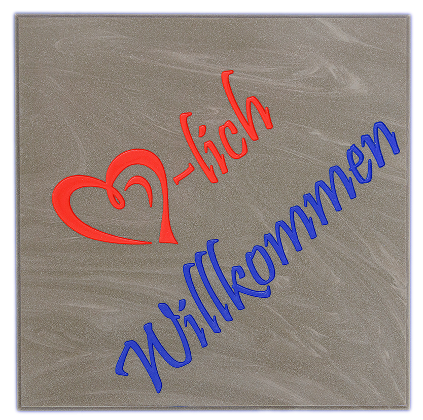 Werden auf Wunschgröße zugeschnitten, tiefgraviert und mit Farbe ausgelegt
